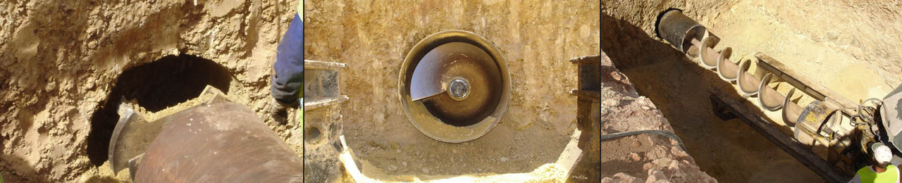 À medida que o terreno é desmontado por rotação e acção da cabeça de corte, verifica-se a progressão do conjunto. O terreno original desmontado na frente de escavação é transportado para o exterior até ao poço de ataque, através da acção de rotação dos sem-fins, e retirado do poço por máquina escavadora. Uma vez instalado um tubo em aço é soldado um novo tubo para então se repetir a tarefa. Os tubos vão sendo soldados um a um à medida que vão sendo cravados. No final é inserido no seu interior o tubo definitivo, que pode ser de qualquer tipo.