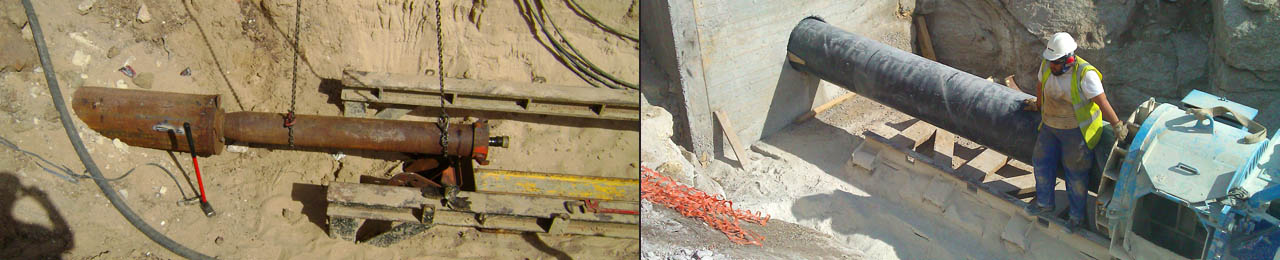 À medida que o terreno é desmontado por rotação e acção da cabeça de corte, verifica-se a progressão do conjunto. O terreno original desmontado na frente de escavação é transportado para o exterior até ao poço de ataque, através da acção de rotação dos sem-fins, e retirado do poço por máquina escavadora. Uma vez instalado um tubo em aço é soldado um novo tubo para então se repetir a tarefa. Os tubos vão sendo soldados um a um à medida que vão sendo cravados. No final é inserido no seu interior o tubo definitivo, que pode ser de qualquer tipo.
